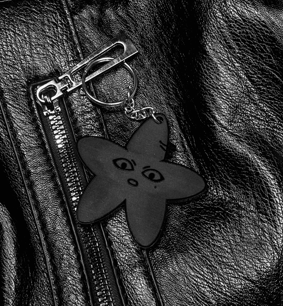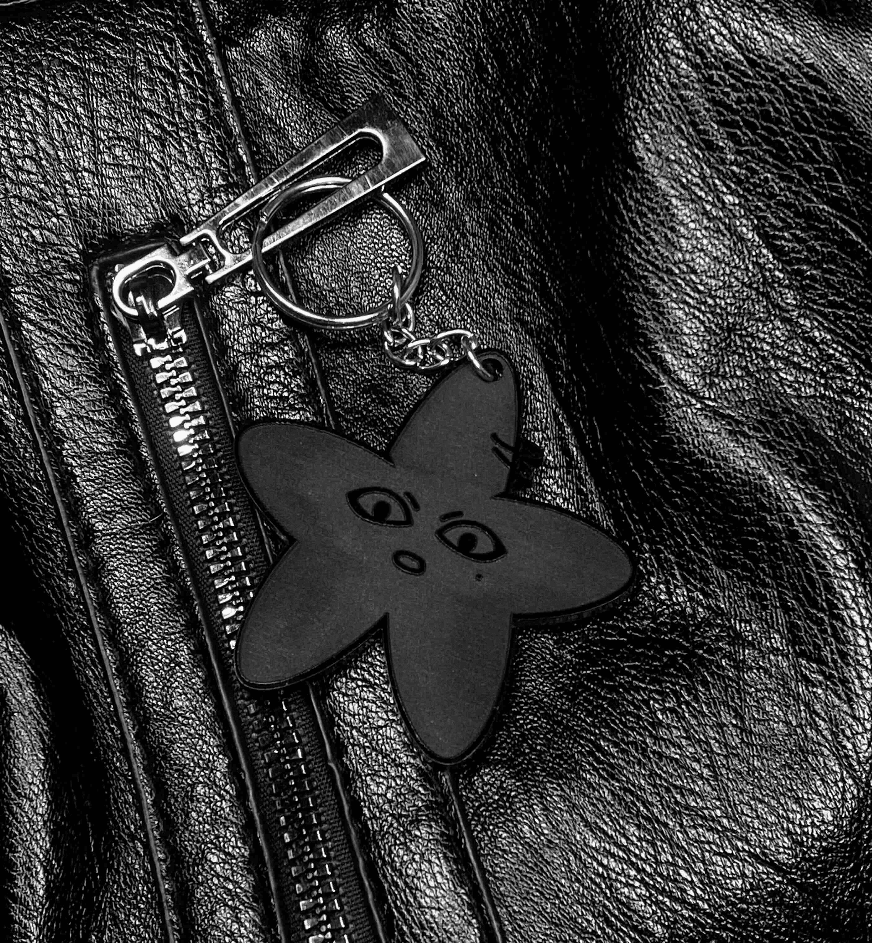 Laser cut acrylic charm connected to a metal keychain of a Grumpy Star