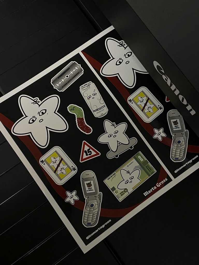 A set of ten vinyl stickers with original illustrations of Grumpy Star.